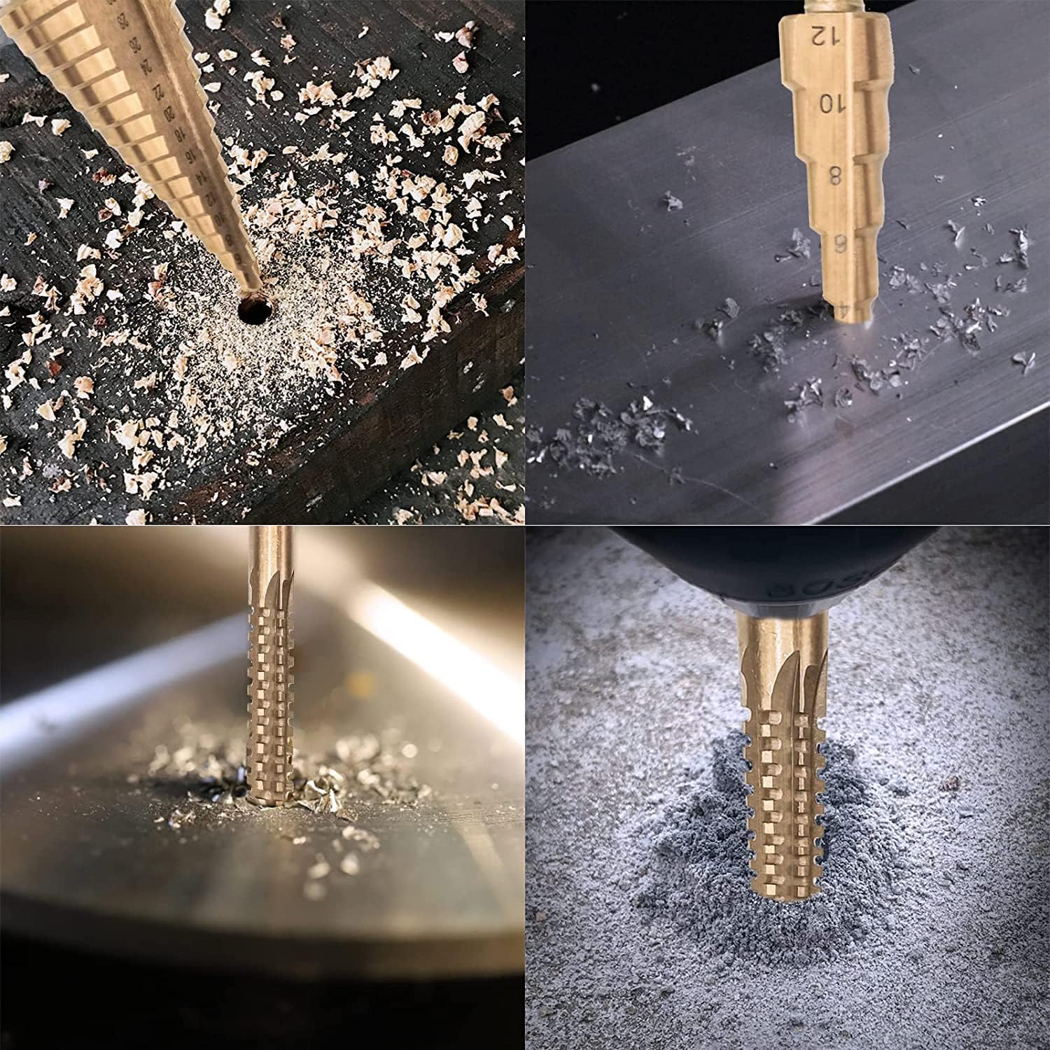 ✅ Diseño Escalonado Versátil: Cambia entre tamaños sin detenerte ni complicarte. Perfora agujeros de diferentes diámetros con una sola broca, ideal para trabajos rápidos y profesionales.